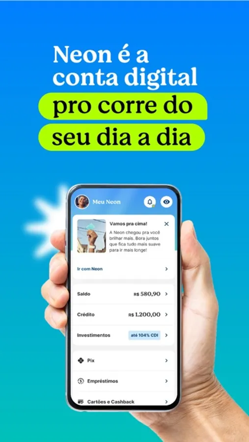 O propósito da Neon é diminuir desigualdades, mostrando caminhos financeiros mais simples e justos, porque todos merecem um futuro brilhante. Por isso, queremos ser o seu maior parceiro na transformação da sua vida financeira. Vamos juntos?