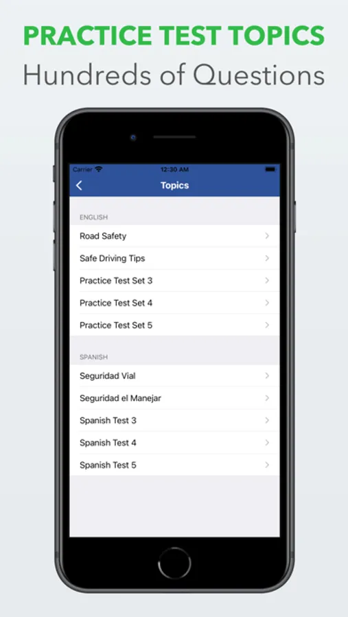 Want to experience the real driver's license knowledge test? You absolutely can, by trying out the included practice test with hundreds of real questions and correct answers in English and Spanish combined.