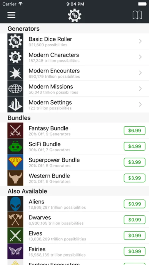 Use our powerful generator to create literally quadrillions of characters, creatures, encounters and locations! With generator topics from sci-fi to fantasy to westerns, we've got you covered no matter what campaign you’re running. A simple tap of the button will re-generate a new result, so you'll never be out of ideas again!
