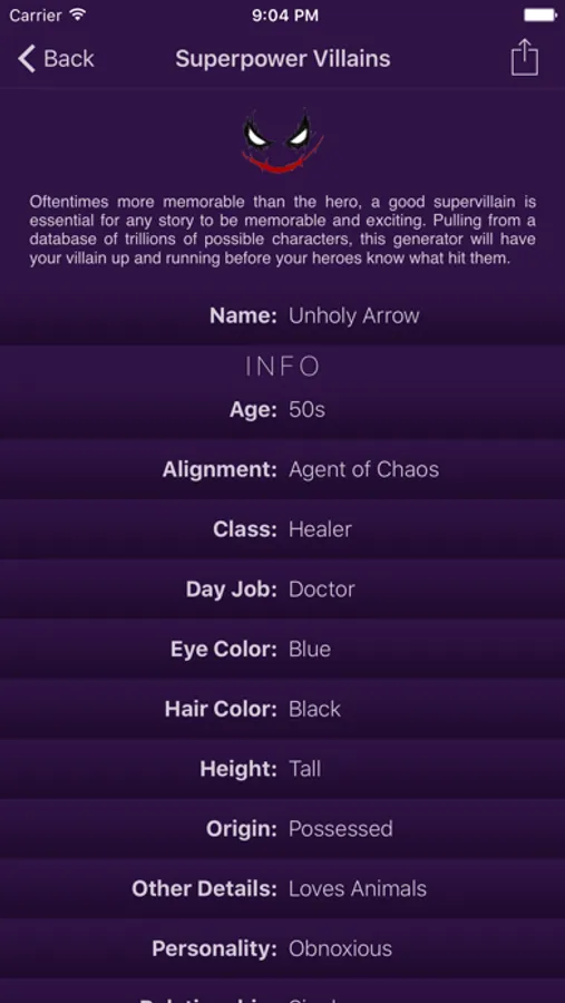 - Each monster, planet, unit, culture, etc. that you create comes pre-equipped with specific information such as name, life type, orbit for solar systems, deployment type for army units, and much more. Anything you need to build your campaign is pre-included, and changes with each tap of the finger.