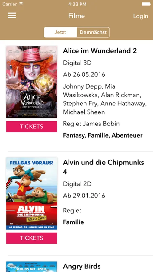Bleib immer up-to-date und lass Dich über neue Filmstarts, Kino-Premieren, Trailer, Events und Sneak Previews informieren. Alle aktuellen Vergünstigungen und Vorteile landen direkt auf Deinem iPhone. Kinoprogramm und Vorführungen immer aktuell und filterbar nach IMAX, 4DX, Atmos, Real3D, 2D und OV (Originalfassung). Ebenso verfügbar: alle Spieldaten der Ballett- und Opern-Übertragungen aus der Royal Opera London und der Metropolitan Opera New York in Pasching und Innsbruck.