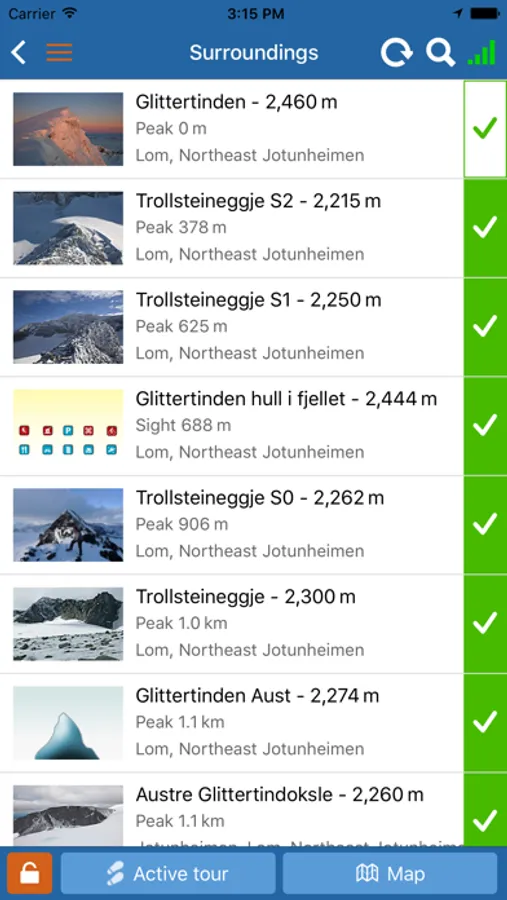 The Peakbook App is a very handy tool enabling you to register your tours, ascents and other visits as well as being a fully functional navigation device with gps and maps. With the App your tours are instantly available on Peakbook, long before you reach home. Your tours can already be fitted with text and images from your device while on tour. No need to turn on your computer to register unless you want to refine your tours via the website, which of course is possible.