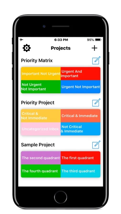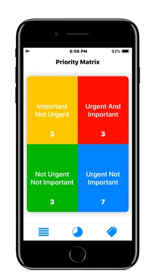 Applying the Eisenhower methodology, Priorities helps you sorting tasks into the right category, depending on their urgency and importance.