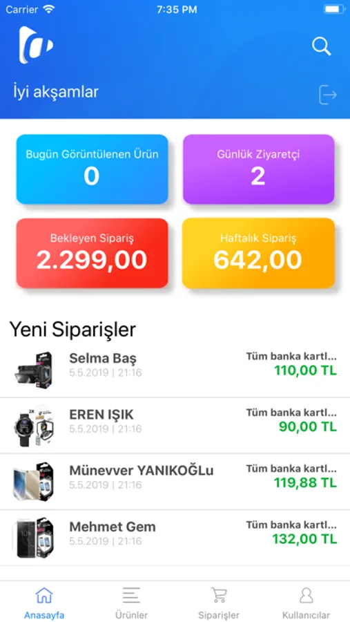 Uygulama sayesinde yönetim paneline mobil cihazınızdan giriş yapıp genel raporlarınızı görebilir, sipariş işlemlerinizi sorgulayıp yönetebilirsiniz. Ayrıca üyeleriniz içinde arama yapıp üyelerinizin iletişim bilgilerini ve sepetlerine ekledikleri ürünleri görüntüleyebilirsiniz. Bu uygulama, sitenizdeki ürünler içinde arama yapıp, ürünleriniz ile ilgili, stok, fiyat gibi temel değişiklikleri de yapmanızı sağlar.