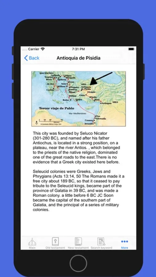 In this application you can have all the maps that are in the bible, the 120 biblical maps of the old and new testament also Physical geography of Palestine the world of the ancient testament the trips of abraham the exodus of egypt division.