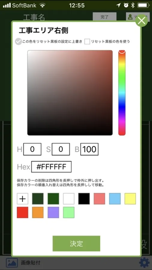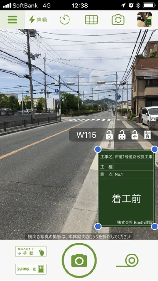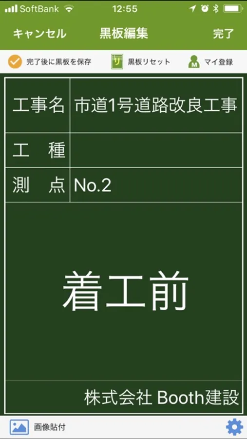 公共工事では、工事中の写真をその時の状況が書き込まれた黒板と共に撮影して提出しなければなりませんが、黒板が一体となったこのアプリを使うことで現実の黒板は必要なくなります。