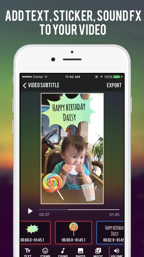VSM is an app helps you add subtitles, caption, text, music, sound, photo, image, artwork, watermark to your video easily.