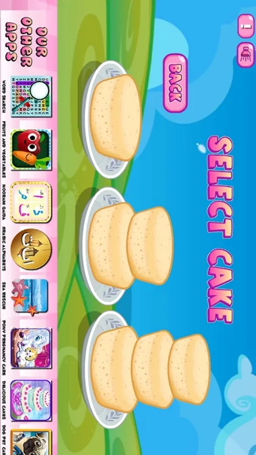 This amazing cake game starts with selecting the cake size to prepare the best cake from one of the great cake games. In the first screen you need to choose the model for the cake you are about to cook, you can choose single cake, double floor cake and three floor cake. Select the cake size, great you have selected a single base cake.