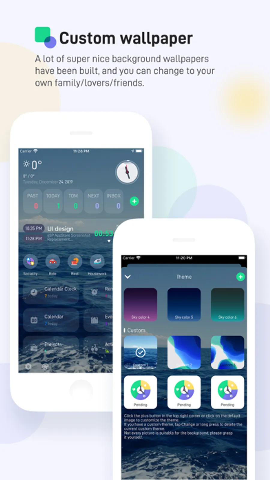 A lot of super nice background wallpapers have been built, and you can change to your own family/lovers/friends. The wallpaper can be changed easily.