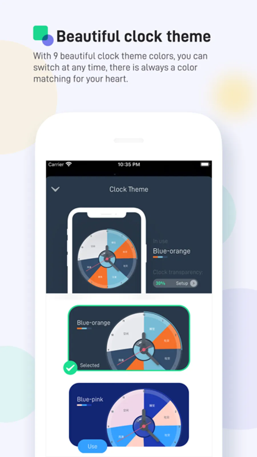There are 9 beautiful clock theme colors available, and there is always one and your heart.