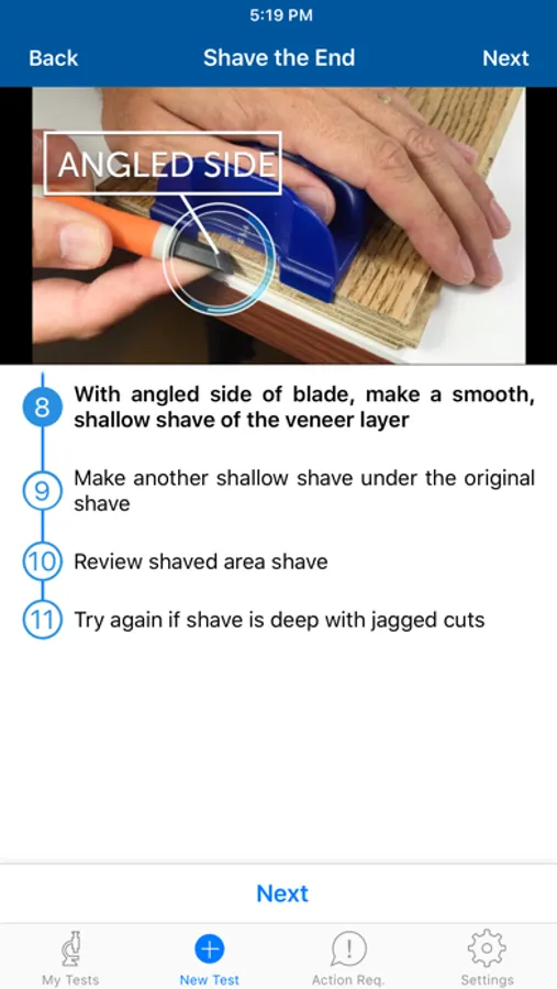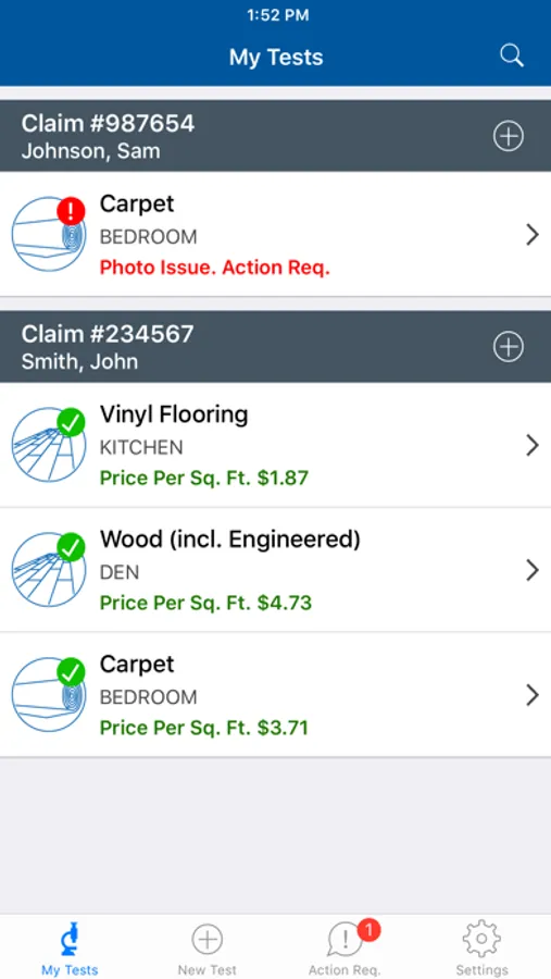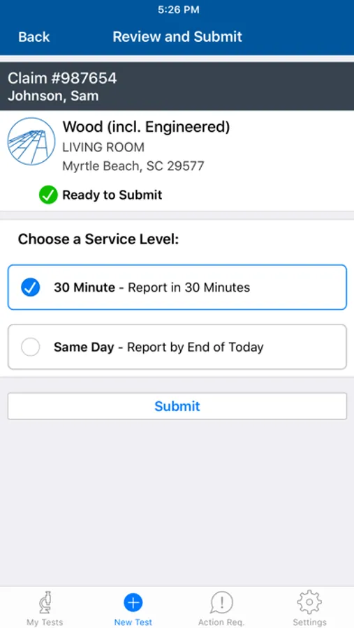 • Test carpet, wood, laminate, vinyl flooring, siding, and roofing in the app and skip sending the sample