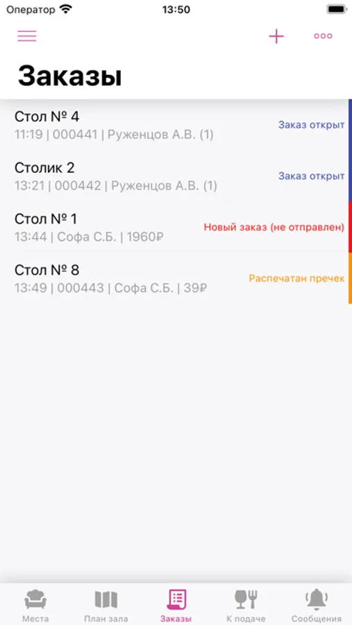 - Простота обработки заказа за счет того, что все меню всегда под рукой
