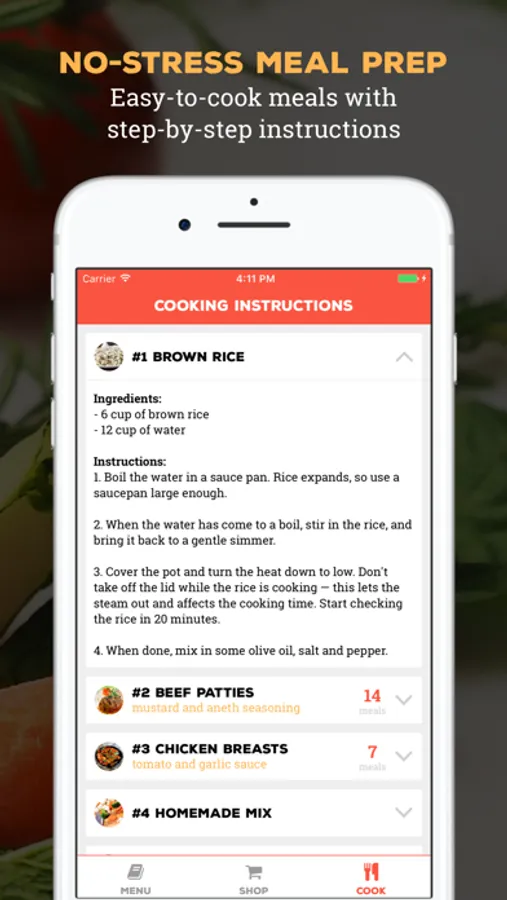 • Cook your meals easily and rapidly even if you’re the worst cook in the world. The app will auto-generate instructions so you know exactly what to do, and when to do it.