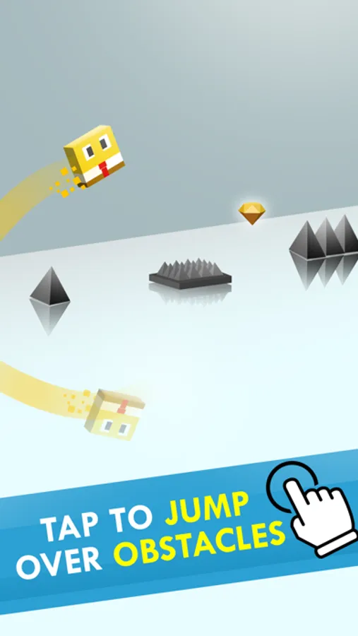Player can tap the screen to jump over the obstacles, and tap again for double jump! The player controls two characters at the same time—the one on the surface and its reflection. When the main character jumps, its reflection jumps as well. In the same manner, both obstacles on the surface and obstacle reflections count as well.