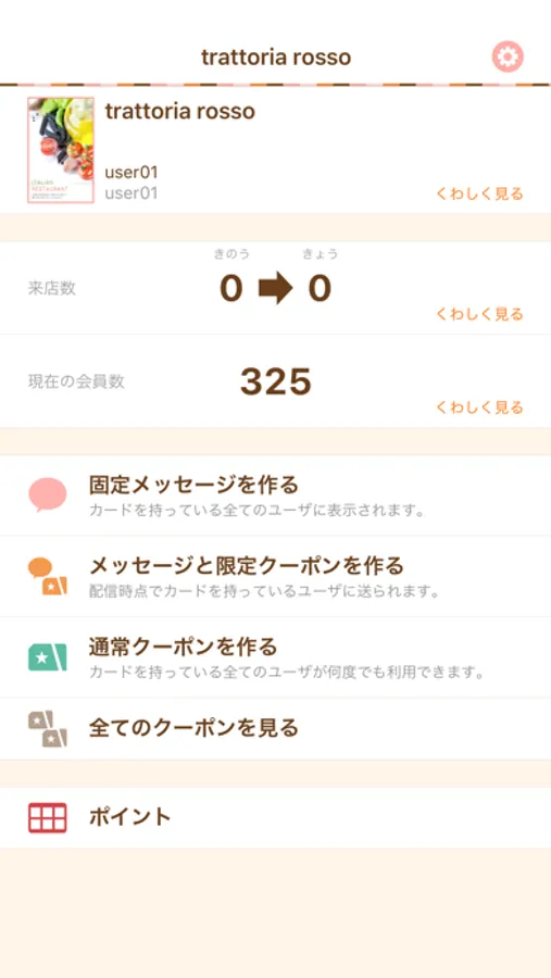 また、現在の会員数やお店の情報などを簡単に確認することができます。