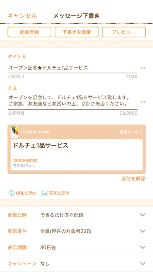 Zeetleでお店のカードを持っているユーザーへお知らせを配信したり、クーポンを添付したメッセージを配信することができます。