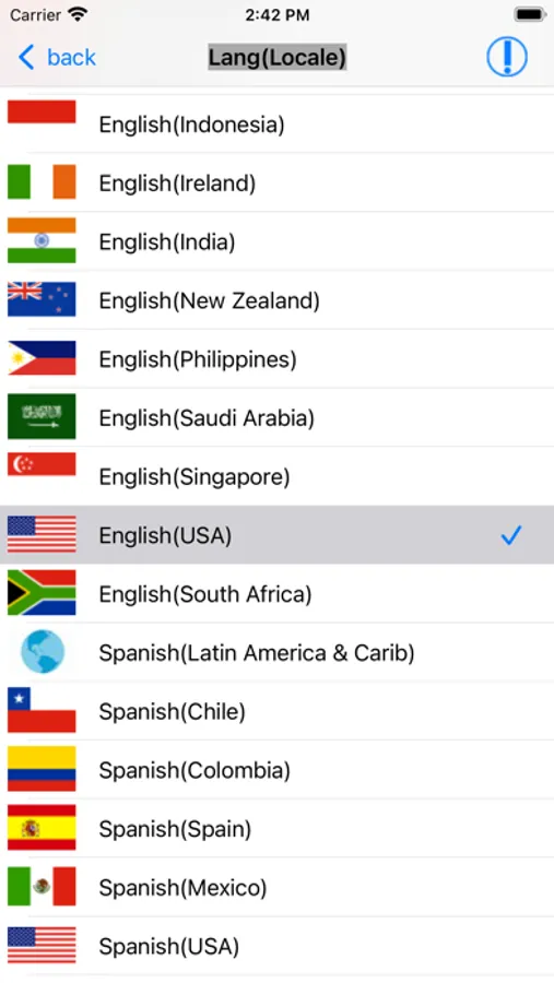 Tap the "Settings" button on the upper right to move to the setting screen. By selecting any language from the language picker, speech recognition of that language becomes possible.