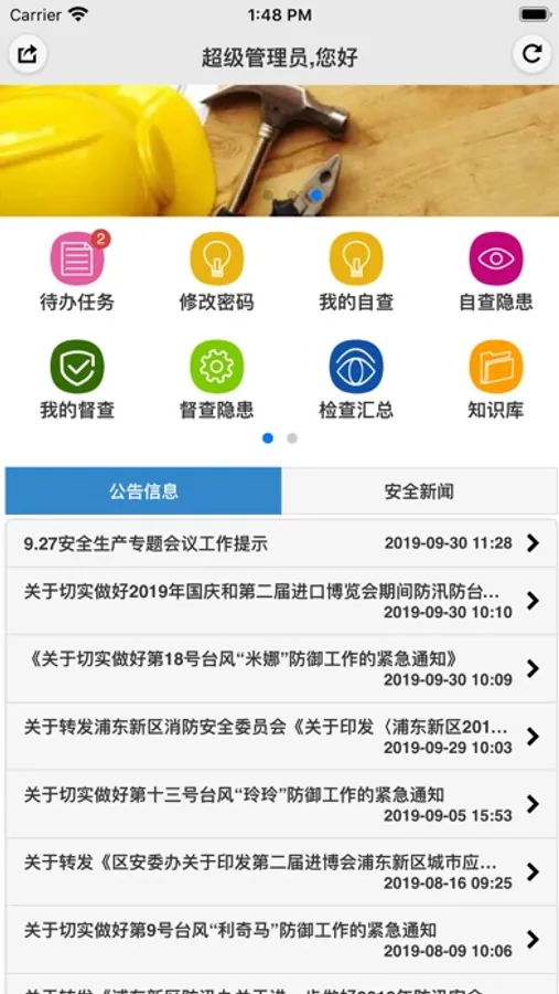 督查隐患:查看安全督查发现的问题;可以针对安全自查发现的问题(隐患) 发起隐患的整改流程。