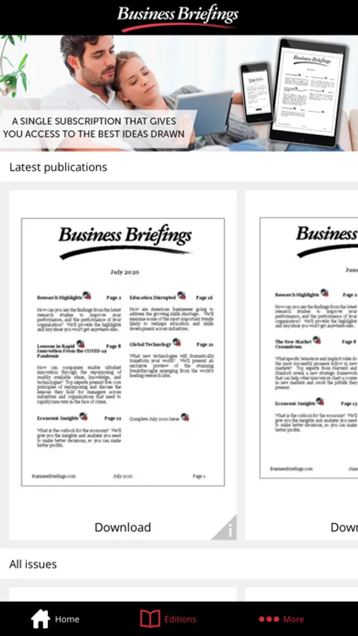 To compete effectively, you need to ensure that you’re always the smartest and best-informed person in the room. But, if you’re like most business professionals, you don’t have time to identify and keep up with the broad set of game-changing ideas in management, technology and economics that impact your business and career. What’s the solution? Do what thousands of other smart executives have already done; rely on Business Briefings. Depend on our team of Harvard MBAs, Fortune 500 senior executives and internationally-known management consultants to identify what you need to know and give it to you in the most time-conscious way possible. Each month the Business Briefings app delivers an audio and print briefing packed with today's most crucial ideas distilled from more than 300 sources. It's the quickest way to discover “the next big idea.”