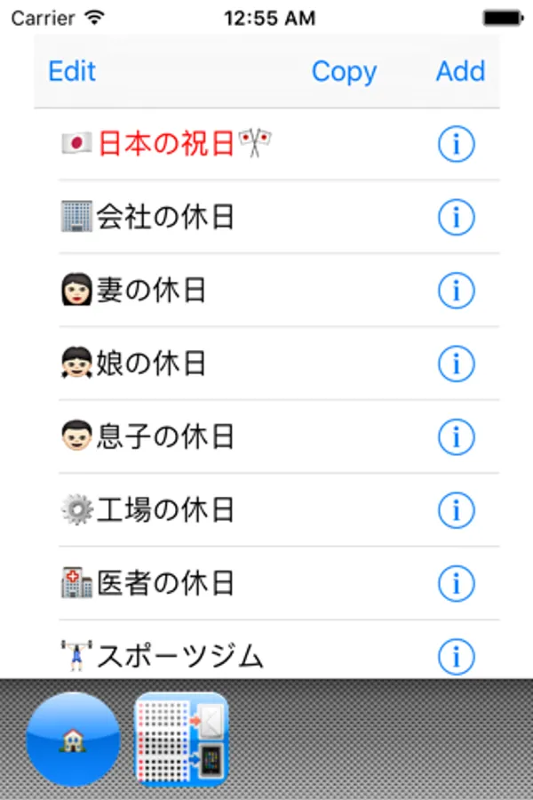 I don't want to put it in the schedule such as a holiday in a favorite store and a holiday of client's company, a holiday of a passing doctor or a holiday of an in-house factory, but I'd like to know only a calendar.