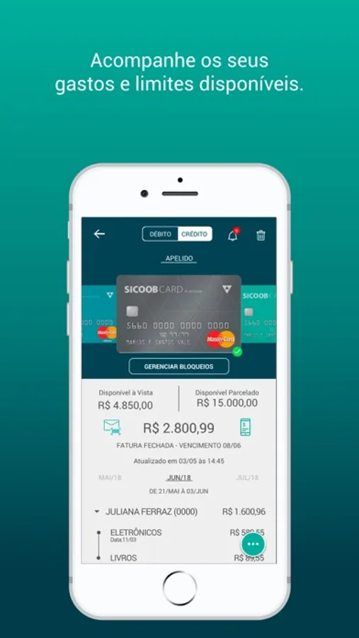 Com o APP Sicoobcard é possível ter o controle das suas compras a hora que quiser e de onde estiver. O APP disponibiliza várias funcionalidades que ajudam você no dia a dia, de uma forma muito simples e intuitiva.