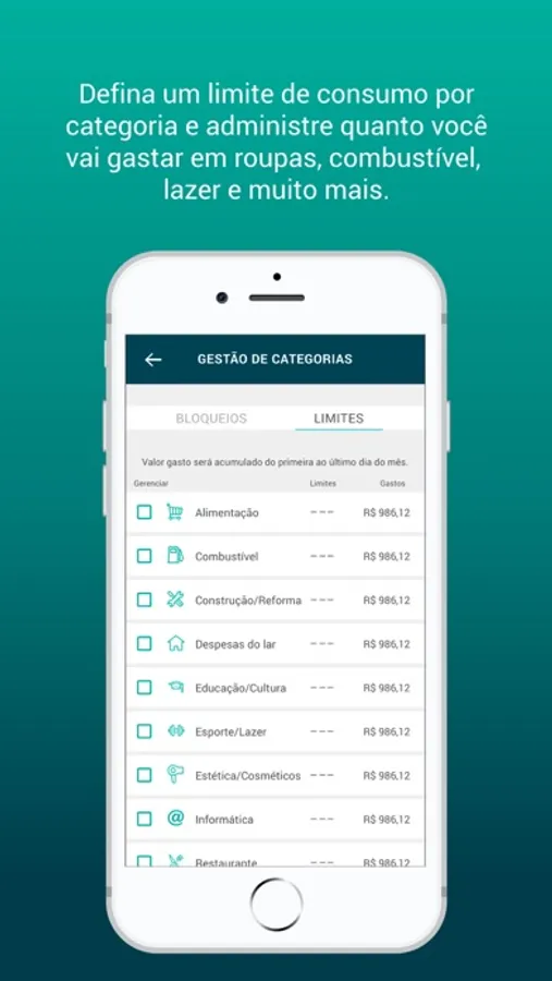 · Alterar o limite e realizar bloqueio dos cartões adicionais (geral ou por categoria)