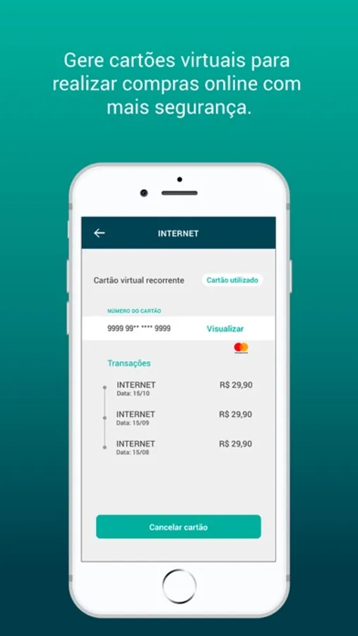 Já imaginou gerar um cartão virtual para compras online em segundos? No app você pode. E liberar o cartão para uso no exterior? No app você também pode. Ah, e para suspender a fatura impressa? Isso mesmo, faz no app!