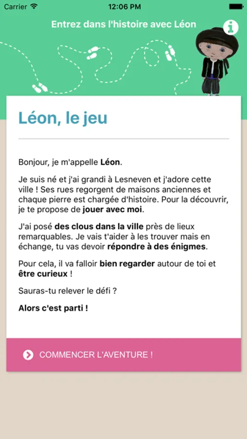“JOUE AVEC LÉON ET PLONGE DANS L’HISTOIRE DE LESNEVEN” est un jeu numérique qui permet de découvrir Lesneven et son histoire. C’est un jeu/parcours orienté retraçant les grandes périodes de la ville. Ce jeu s’adresse aux enfants, aux adultes. C’est surtout un jeu à partager en famille.