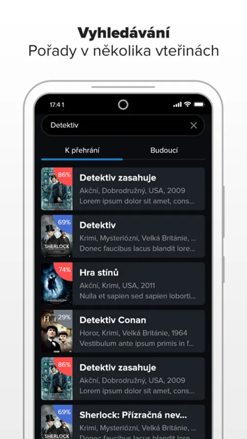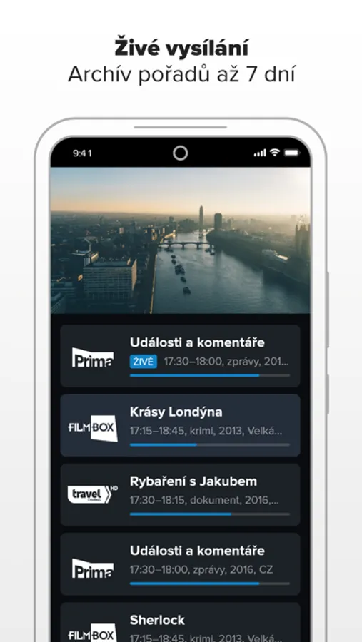 - živé televizní vysílání s možností přehrání od začátku