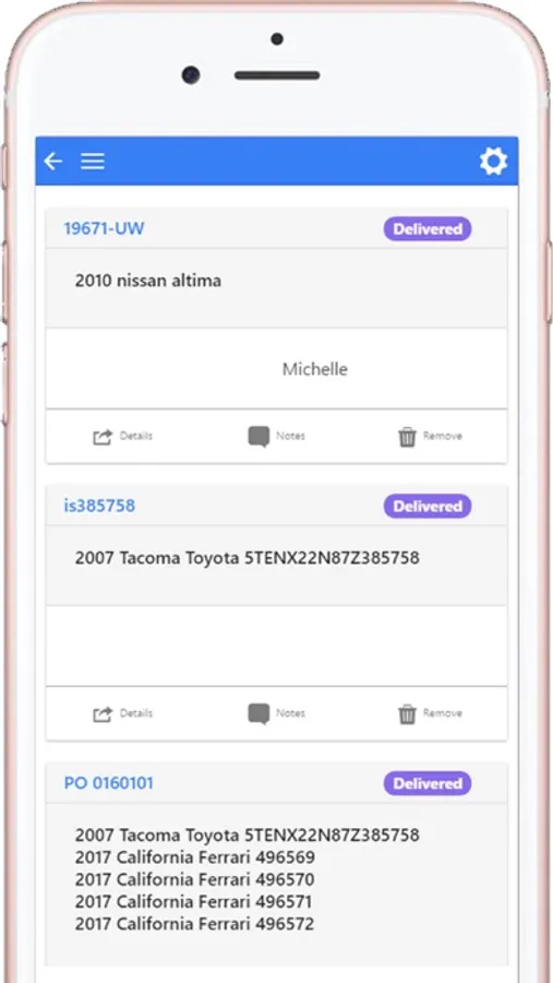 Manage all assigned work, complete inspection with pictures and mark damages on diagram or actual pictures, capture signature at pickup and delivery, generate Electronic BOL, upload and access important documents, send ETA and status updates, send out invoices, share location with the dispatch team, keep track of expenses on the go, scan VIN barcode to add or update/verify car information and much more.