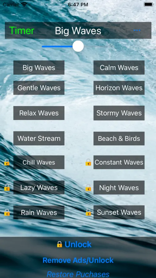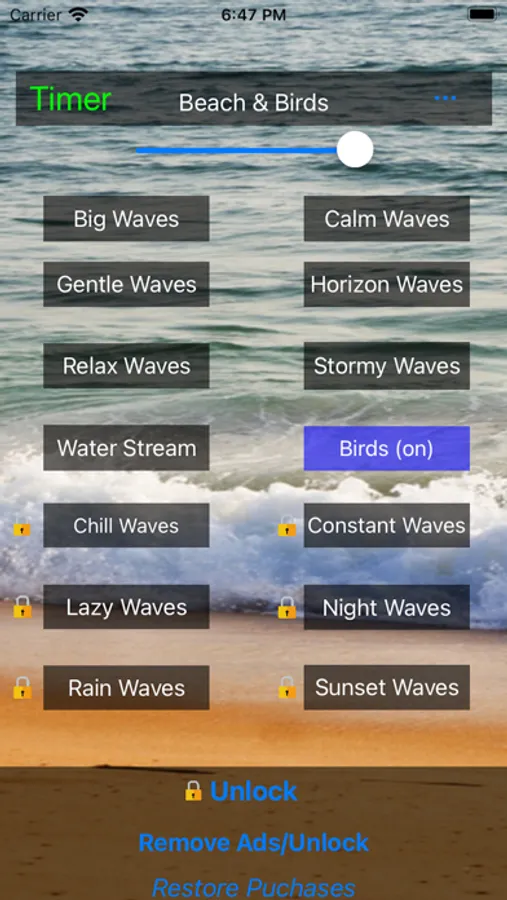 Beach Sound Central has beautiful Beach Sounds to listen to and relax the mind. Use this handy tool to fall asleep, meditate, or just sit back and relax to the calming sounds of the beach. This app also includes a timer feature to turn off the beach sounds at a desired time or for falling asleep. The app includes: