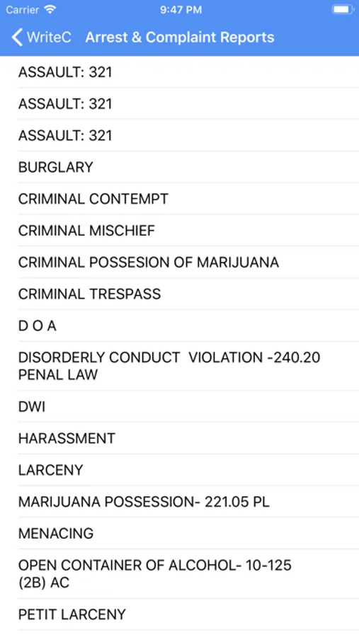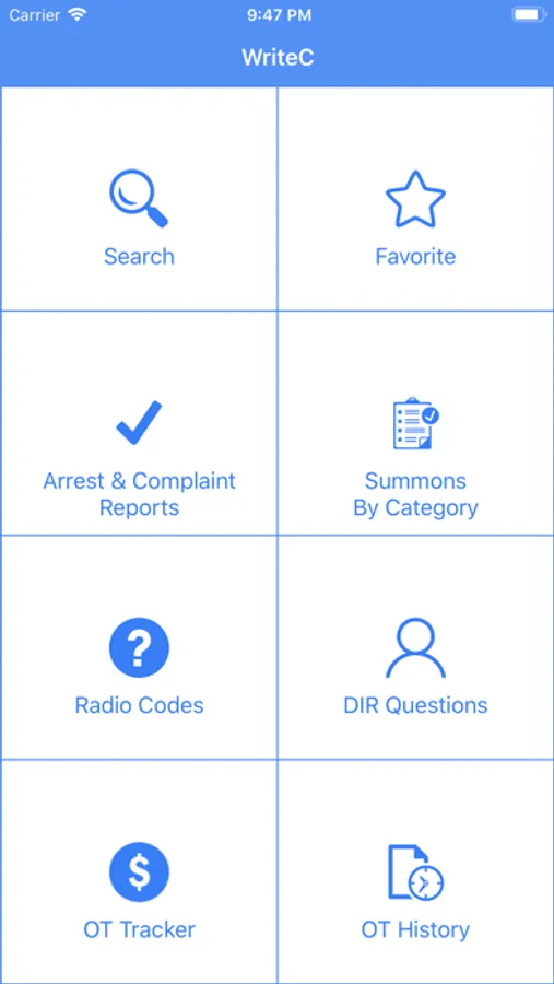 WriteC is a very simple app to help New York's finest to write "C" summonses(criminal court summonses). It has a large compilation of many criminal court summons codes you need. You can find the code by typing in the offense or searching for it by category. If you find yourself writing the same summons over and over again, you have the option of adding any offense to your favorites list.
