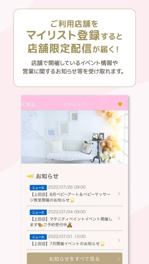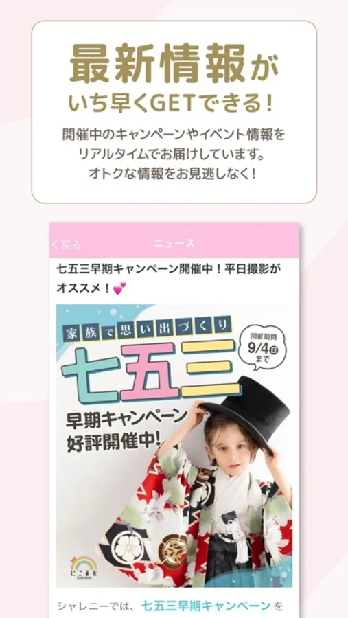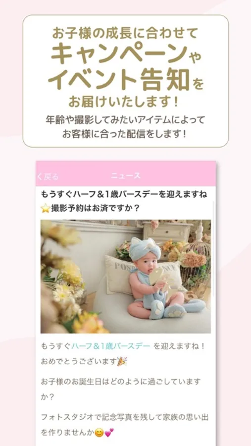 成長に合わせた撮影キャンペーンやイベント内容が届くので、必要な情報をリアルタイムで手にすることが出来ます。