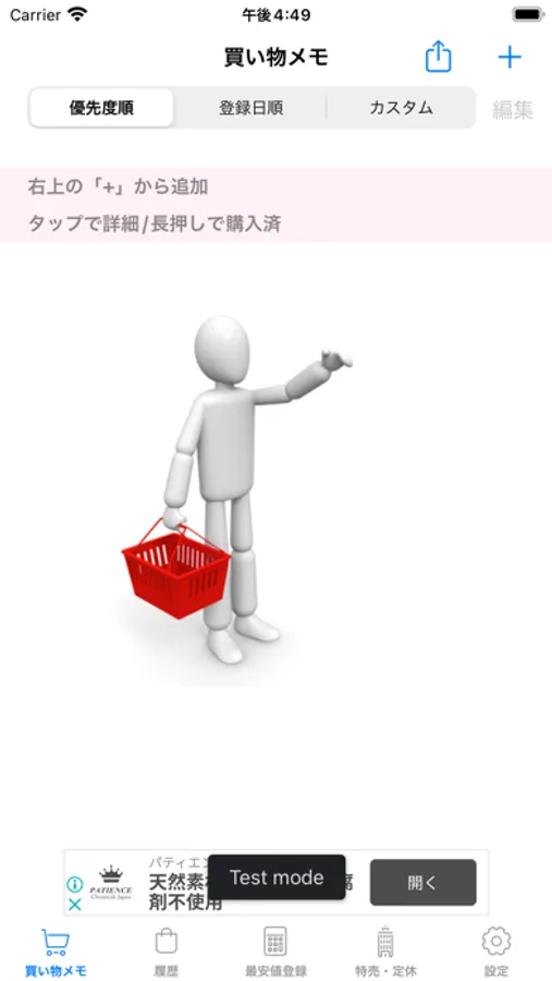 If tap the "Add" next to enter the name at the top of the search frame in the case was not in the goods list (where the magnifying glass is out).