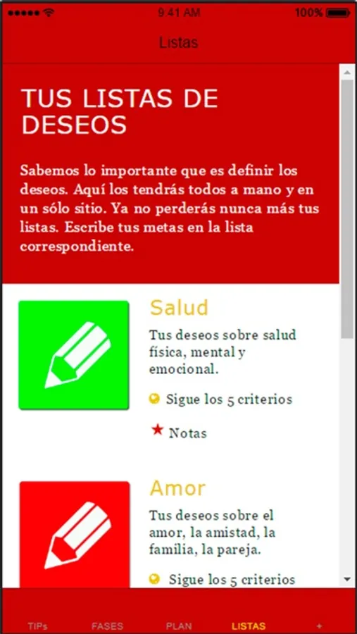 - Un apartado de notas: apunta todas tus reflexiones y tus metas siguiendo la Ley de Atracción