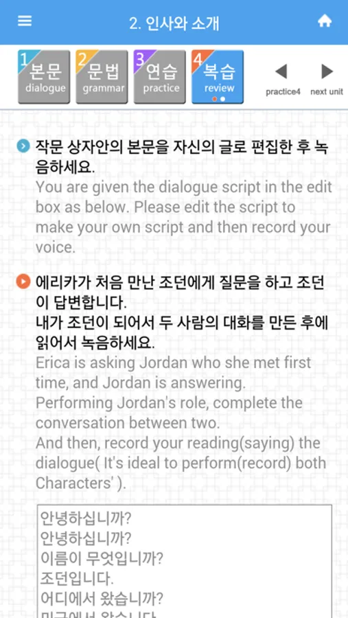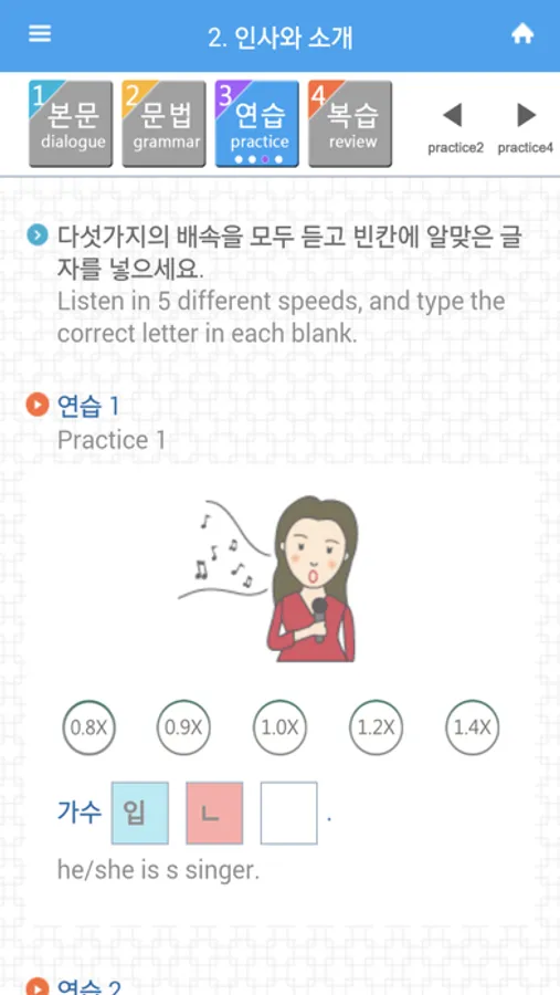 3. Listen & Speak : 5 different speeds and record voices. And compare with native Korean voice actor !