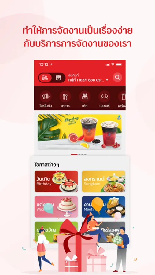 Feel like dining in S&P restaurant with our various menu to be delivered into your hand in every occasion, snacks, individual favorites, main favorites, desserts, drinks, and BlueCup coffee. Moreover, we have cakes for your special occasions, meal boxes and snack boxes for your seminar and ceremony.