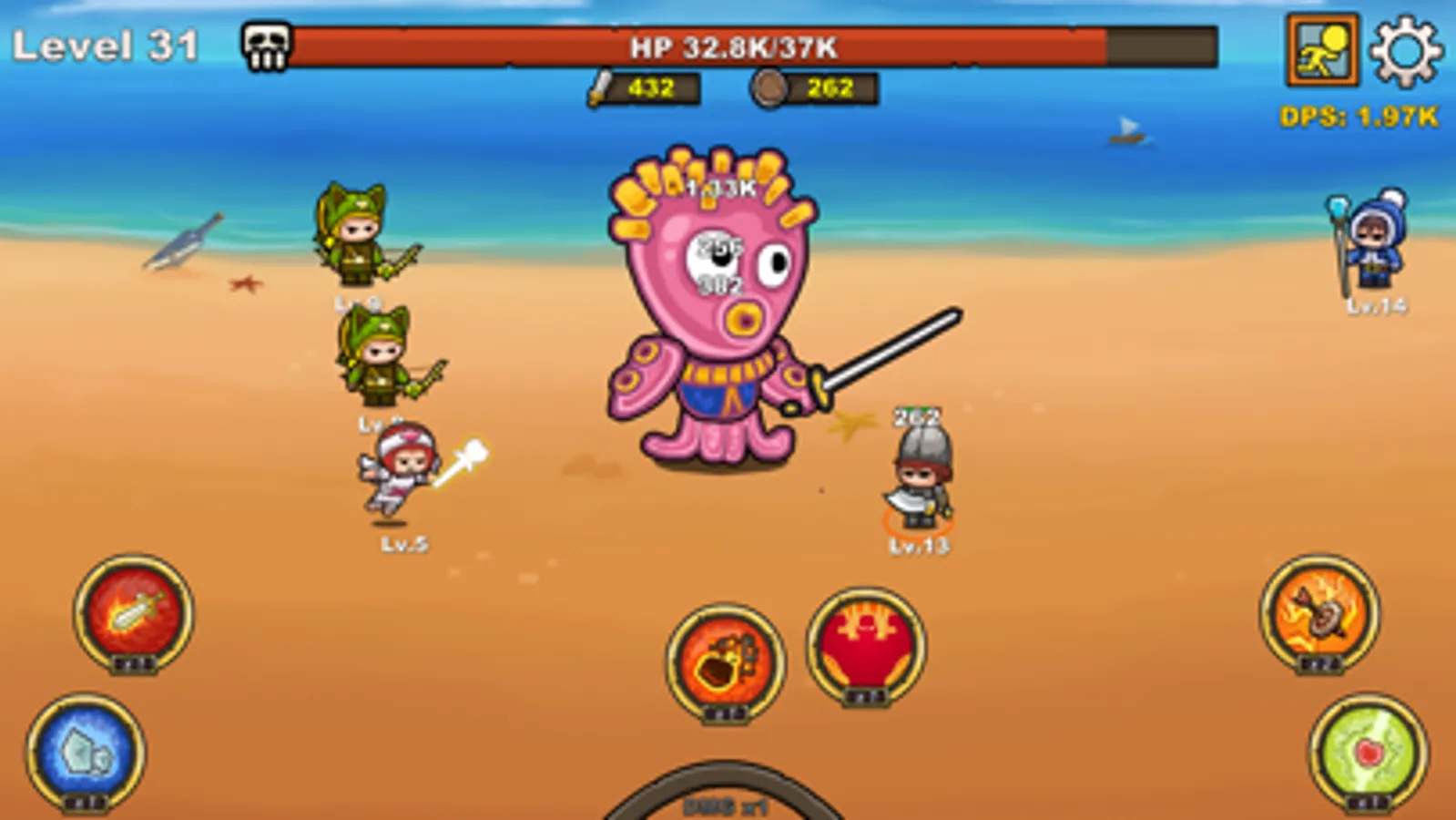 Your allies attack automatically in this idle clicker, but you can help them out with special attacks and skills.