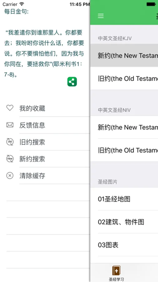 该APP主要内容:中英文NIV/KJV 和合本圣经阅读朗诵,圣经搜索,诗歌赞美,诗歌搜索,圣经图片,每日灵粮等