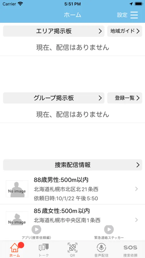 このアプリは、「認知症患者が徘徊で行方不明なので探してほしい」というご家族や施設管理者からの捜索依頼と、コールのあった場所から半径5km以内にいる「捜索に協力しますよ」という協力意思を持った人を結ぶアプリです。