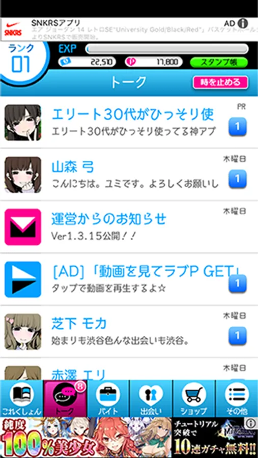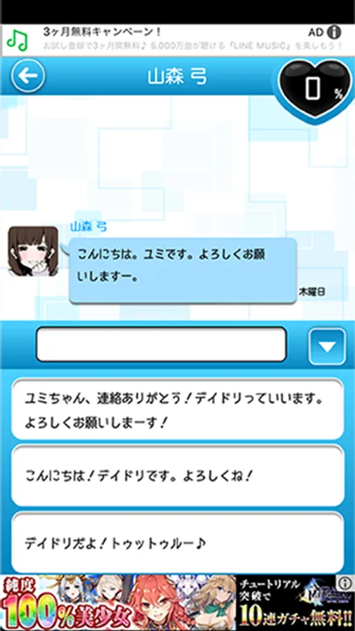 2.LINE風メッセで女の子との愛情度を上げろ!