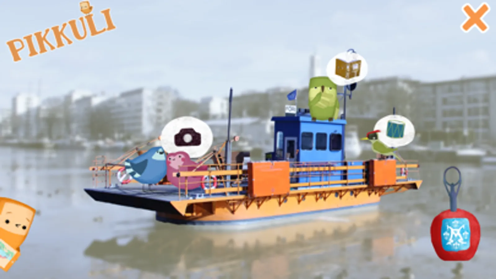 This time Pikkuli and friends have found their way to Turku's own Föri-ferry! Jump onboard to the sunny and funny cruise over the river Aura! Listen to what old Mr. Owl has to tell about the history of Föri. Play your own tune with Woodpecker and friends. Take a photo of your cruise with Pikkuli characters and share it in the social media! Fun little summer app, that is playable by the whole family.