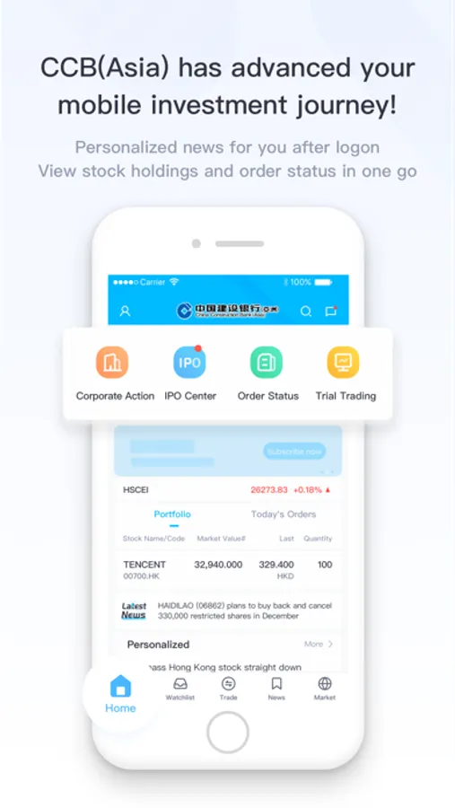 CCB (Asia) strives to bring you a more sophisticated Investment App Service. FortuneLink Mobile App is an enhanced trading platform to bring you a sleek user experience, and help manage your wealth even more efficiently at your fingertips.