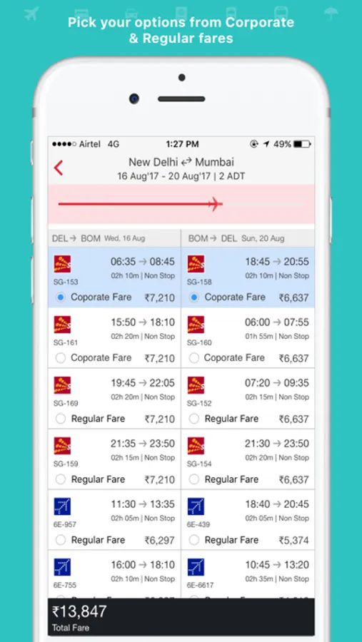 Basis your company’s arrangement with the Airlines, book your tickets at specially negotiated corporate rates: