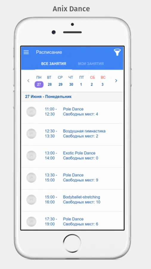 Приложение Anix Dance разработано для учеников студии танца на пилоне Anix Dance а г. Москва