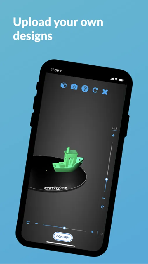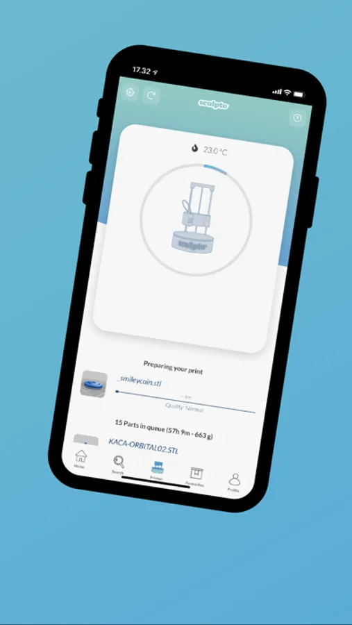 The Sculpto App allows you to 3D print your own and others' ideas on your Sculpto 3D printer. After you have connected your Sculpto Printer to your Wi-Fi, you get access to a large selection of 3D models that you can print. All you need to do is to choose the quality you want to print and then press “Print".