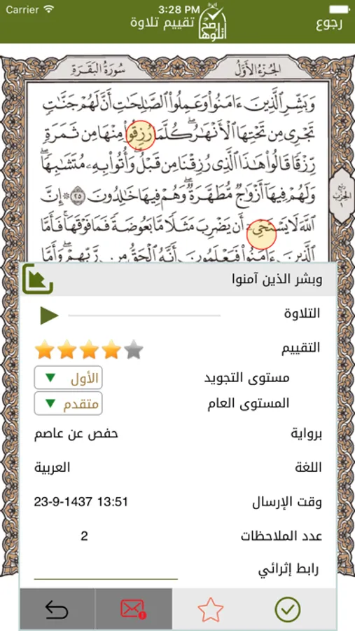 نسخة مخصصة فقط للمعلمين في تطبيق (اتلوها صح) التطبيق العالمي الأول والذي يهتم بتصحيح تلاوة القرآن الكريم صوتياً من خلال معلمي القرآن والماهرين به يشرف ويدير التطبيق جمعية (خيركم) لتحفيظ القرآن الكريم بجدة