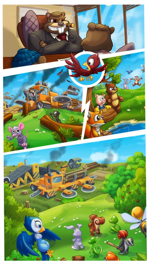 The Forest has never been in greater danger! The once menacing Beavers have been bought out by a mega-corporation. Now their tree cutting machines will have the forest clear cut in days.