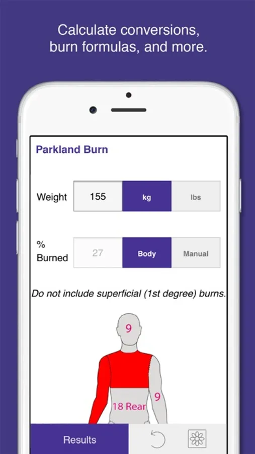 - List of commonly used drugs and tables of often-ordered labs with range of outcomes - Calculators that offer a guide to simple conversions, burn formulas (ABA and Parkland), BSA/BMI, and IV drip rates