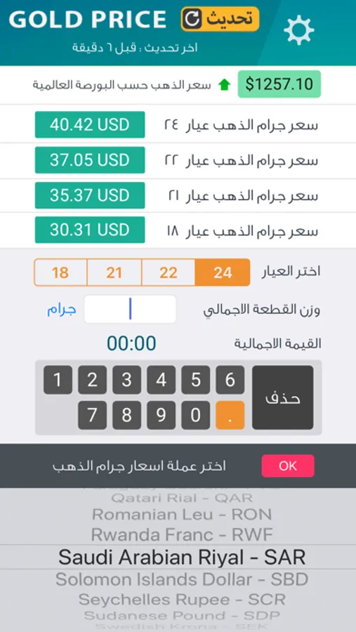 كما يخدمك التطبيق بحساب سعر البيع والشراء بدقة عالية